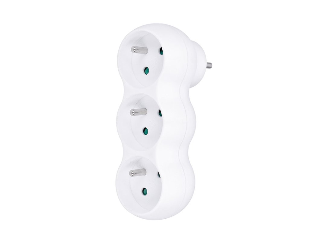 výstup 3 x 10A / 230V vhodná aj do dvojnásobných zásuviek - nezaberá miesto v hornej zásuvke polohovateľná podpera eliminuje nežiaduce výkyvy rozbočky v zásuvke pri manipulácii s káblami dve polohy podpery - nízka a vyššia vzdialenosť od podložky alebo stenynižšiia podpera sa používa pri zapojení do zásuviek v stenevyššia podpera sa používa pri zapojení do predlžovacích prívodov alebo zásuviek v inštalačných lištách detská poistka max. 3680W, max. 16ADodatočné parametre