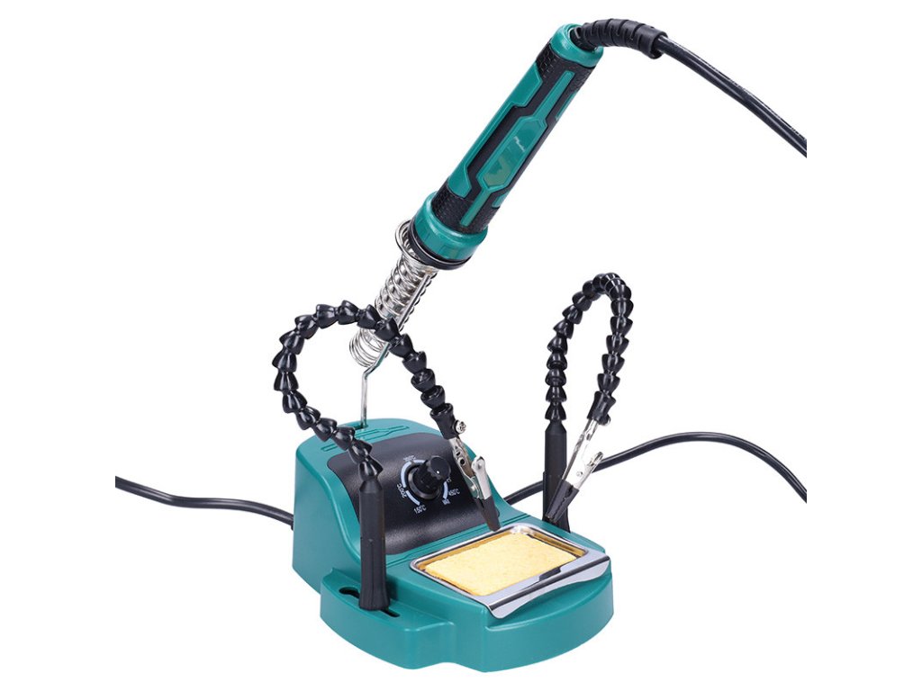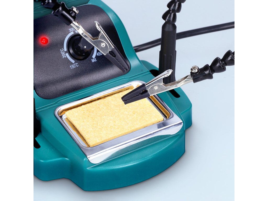 kompaktný a prenosný design 360° otočné izolované krokosvorky na prácu s rôznymi veľkosťami súčiastok a dosiek silikónový kábel pre spájkovacie pero – mäkší a tepelne odolný príslušenstvo: stojan na spájkovacie pero, držiak hubky na čistenie hrotu výkon: max 48 W teplotný rozsah: 160–480 °C vykurovací prvok: keramické výhrevné teleso pre rýchle a stabilné zahrievanie napájanie: 230V, 50 HzDodatočné parametre