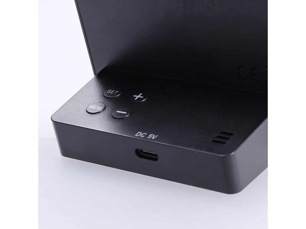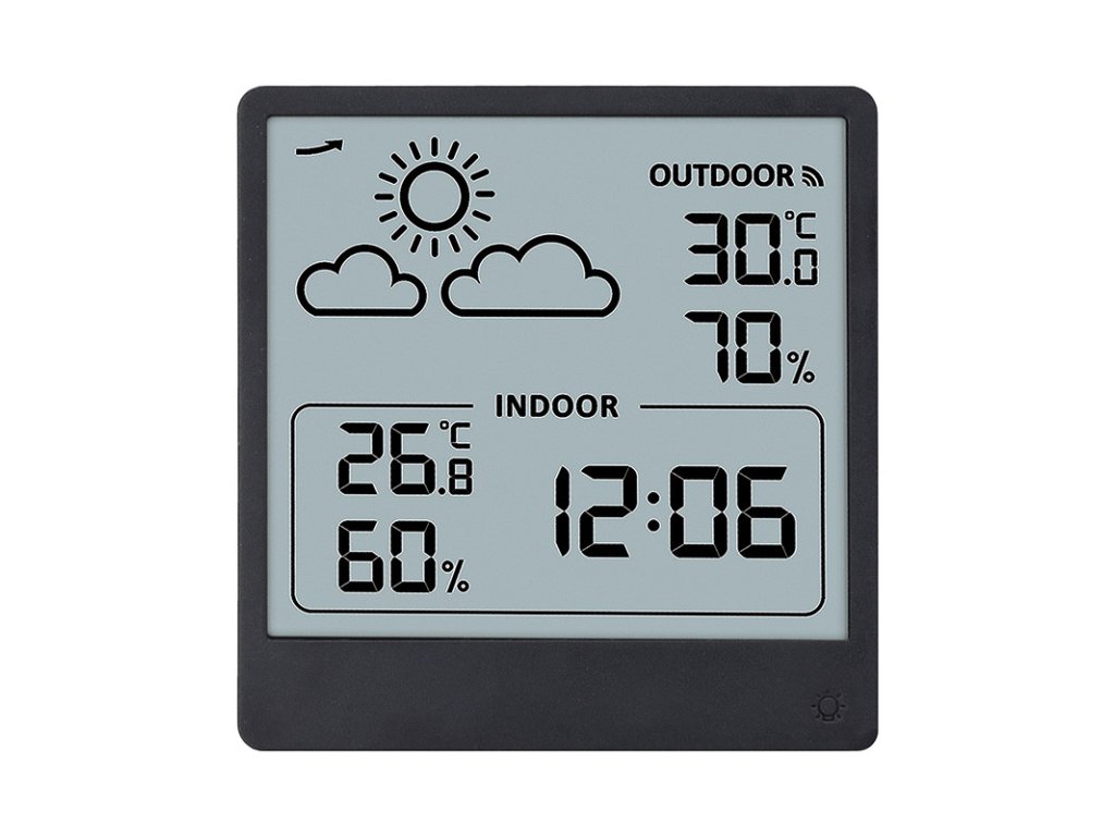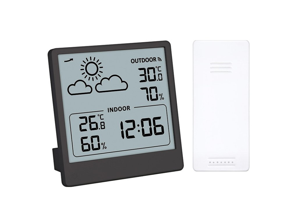 zobrazenie času vo formáte 12/24 hodín meranie vnútornej teploty: -9,9°C ~ +50°C (14,2°F ~ 122°F) meranie vonkajšej teploty: -40°C ~ +70°C (-40°F ~ 158°F) meranie vnútornej a vonkajšej vlhkosti: 20% ~ 95% možnosť voľby jednotiek teploty: °C / °F ukladanie maximálnych a minimálnych hodnôt teploty a vlhkosti zobrazenie trendu zmeny tlaku predpoveď počasia na základe zmien tlaku napájanie hlavná jednotka: 2× AAA (LR03), DC5V / 2A vonkajší senzor: 2× AAA farba čiernaDodatočné parametre