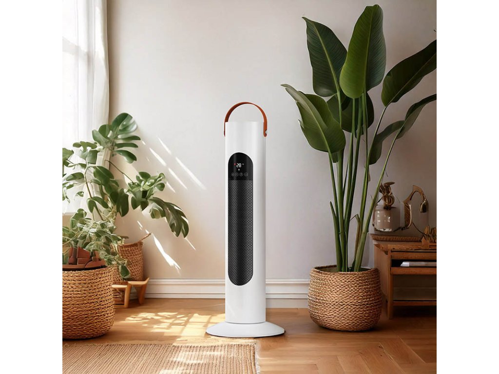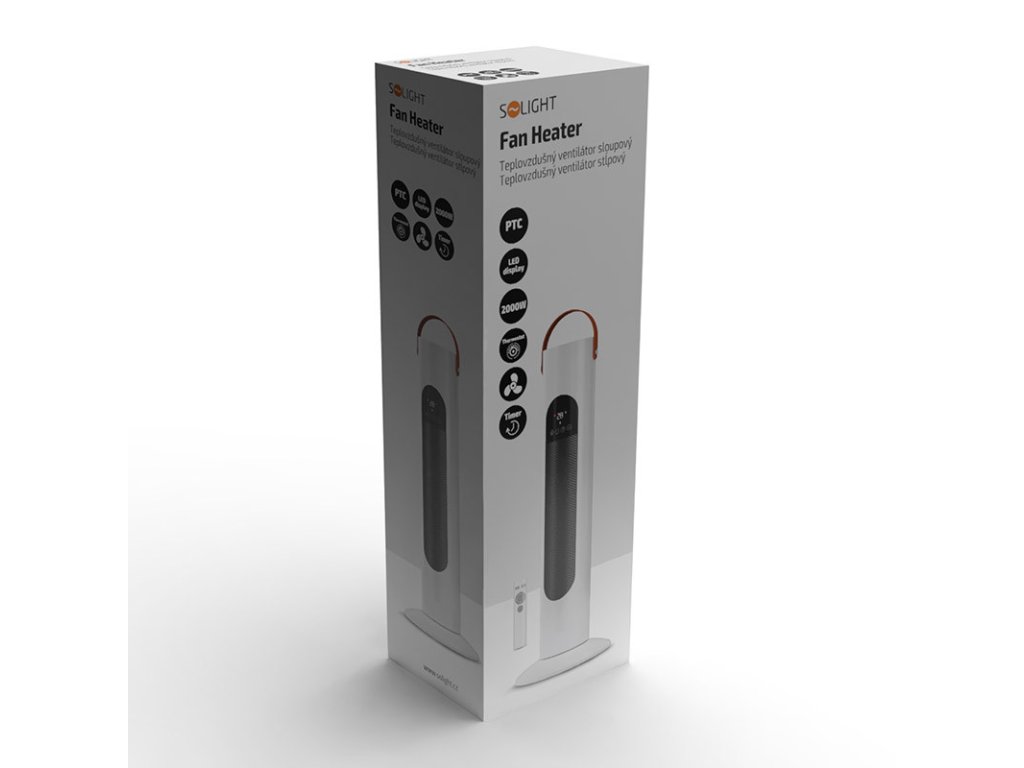 výkon 2000 W PTC keramické výhrevné teleso automatické otáčanie nastaviteľný termostat 18, 21, 24, 27°C až 12h nastaviteľný časovač digitálny LED displej ukazovateľ teploty na displeji ľahký a ľahko prenosný ochrana proti prehriatiu ochrana pri prevrhnutí diaľkový ovládač IP20 napájanie 230V/50Hz 1,9kgDodatočné parametre