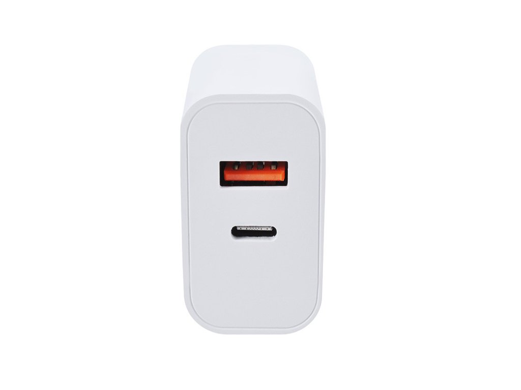 univerzálny napájací adaptér USB A+C 20W rýchle nabíjanie QC 3.0 a PD fast charge pri zapojení jedného výstupu je maximálny výkon 20W, pri zapojení oboch výstupov je celkový výkon oboch výstupov 20W ochrana pri skrate, nadprúdová ochranaDodatočné parametre