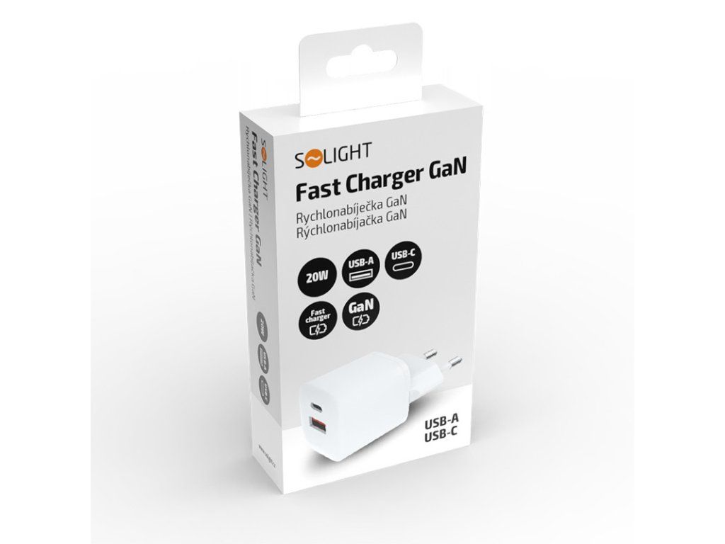 Solight USB-C + USB-A fast charger GaN 20W PD