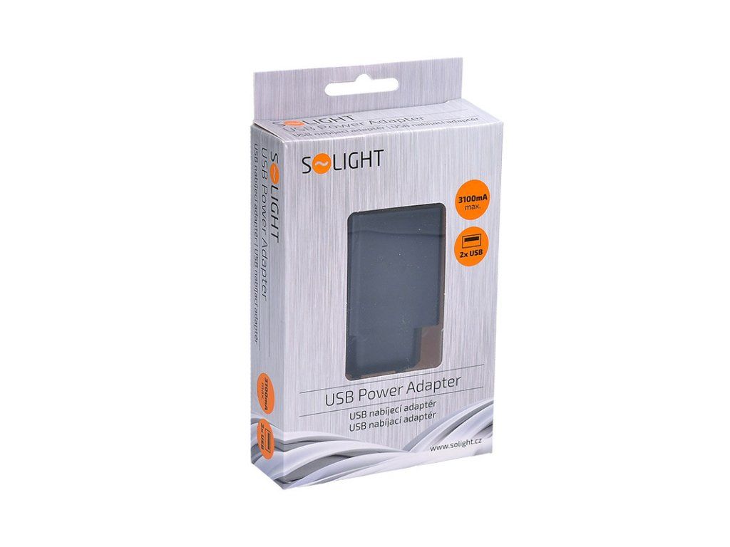 Solight USB nabíjací adaptér, 2x USB, 3100mA max., AC 230V, čierny