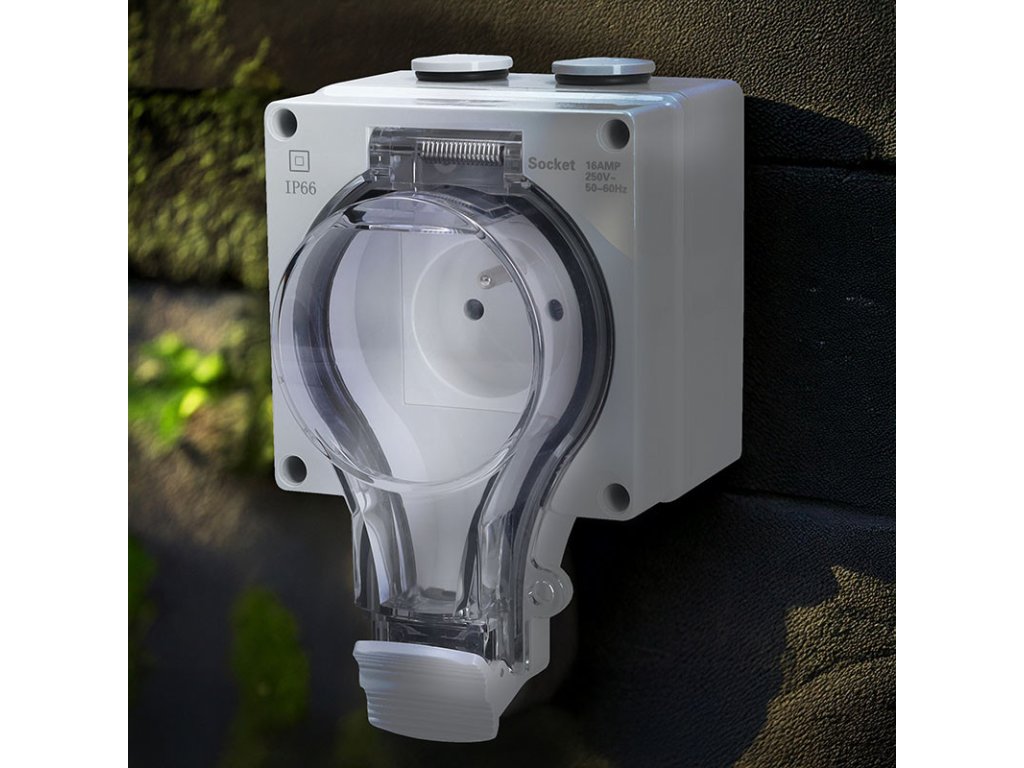 Vonkajšia zásuvka s priehľadným vekom a krytím IP66 ponúka maximálnu bezpečnosť v náročných podmienkach. Je plne chránená proti prachu, tryskajúcej vode zo všetkých smerov a úrazom elektrickým šokom pri kontakte s nástrojmi či drôtmi väčšími ako 1 mm. Vďaka tomuto vysokému stupňu ochrany je ideálny na použitie v priemyselnom aj domácom prostredí, a to aj vo vlhkých alebo prašných podmienkach.Montáž zásuvky na stenu je jednoduchá vďaka priloženému príslušenstvu, vrátane montážnych skrutiek, hmoždiniek, držiakov a vodotesných zátok. Zadný box je možné pripevniť pomocou dvoch metód, ktoré umožňujú prispôsobenie rôznym potrebám.Priehľadné veko zásuvky je možné uzamknúť visiacim zámkom, čo chráni proti nechcenej manipulácii a zvyšuje bezpečnosť. Predĺžený kryt chráni časť kábla a zároveň slúži aj ako páka na ľahšie uzavretie veka. Gumové tesnenie a zátky zaisťujú dokonalé utesnenie proti vode a prachu. Konštrukcia je navrhnutá tak, aby odolala intenzívnym klimatickým podmienkam, čím zaisťuje dlhodobú spoľahlivosť a bezpečnosť pri používaní.Konštruovaná pre maximálnu záťaž 16A, 3680W pri 230V~. Tri káblové vstupy 2x M20 a 1x M25 dovoľujú pripojiť vodiče až 3x 2,5mm2, prípadne prepojiť s ďalšími zásuvkami alebo inou elektroinštaláciou. Vďaka robustnej konštrukcii a jednoduchému použitiu je zásuvka vhodná pre stavebníctvo, priemyselné prevádzky, poľnohospodárstvo, ale aj pre náročné domáce a záhradné projekty. Bez obáv ju možno používať v prevádzkových teplotách -20 °C až +60 °C.Vysoko kvalitné materiály a precízne spracovanie zaisťujú dlhú životnosť zariadenia. Dodržujte pokyny na inštaláciu a použitie, aby bola zaistená maximálna bezpečnosť a funkčnosť. zásuvka 1x 16A, max. 3680W, skrutkovacie svorky 100% chránené proti prachu chránené proti intenzívne tryskajúcej vode vo všetkých uhloch uzamykateľné horné veko proti nežiaducej manipulácii alebo poškodeniu skrutkovací vstup 1x M25x1,5, vrátane vodotesnej skrutkovacej zátky skrutkovací vstup/výstup 2x M20x1,5; vrátane vodotesných skrutkovacích zátok, na prepojenie s ďalšími zásuvkami alebo inou elektroinštaláciou montážne príslušenstvo súčasťou balenia (skrutky, hmoždinky, vodotesné zátky, montážne držiaky) nutné dokúpiť vodotesnú káblovú priechodku podľa potreby, príp. visiaci zámokDodatočné parametre