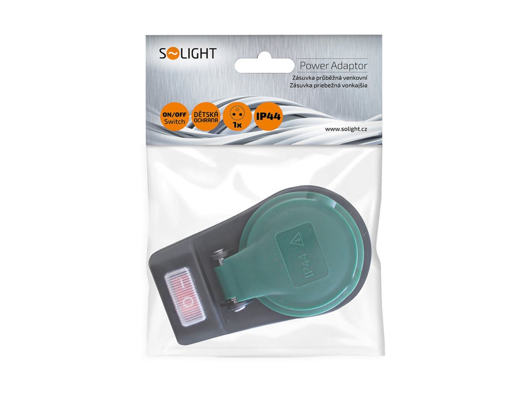 Solight zásuvka priebežná IP44, 16A, čierna, vypínač