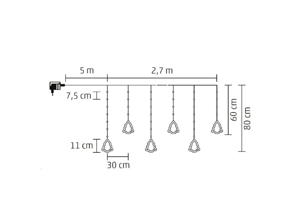 | Počet svetelných zdrojov: | 110 ks (5x10 ks, 5x12 ks) |