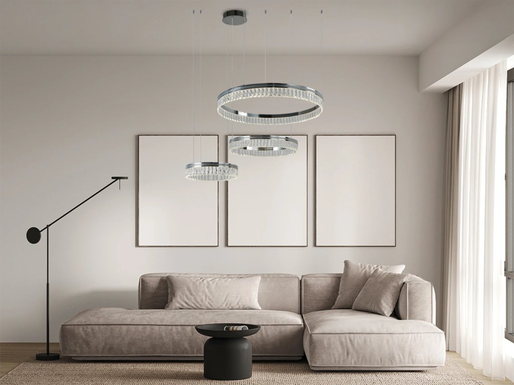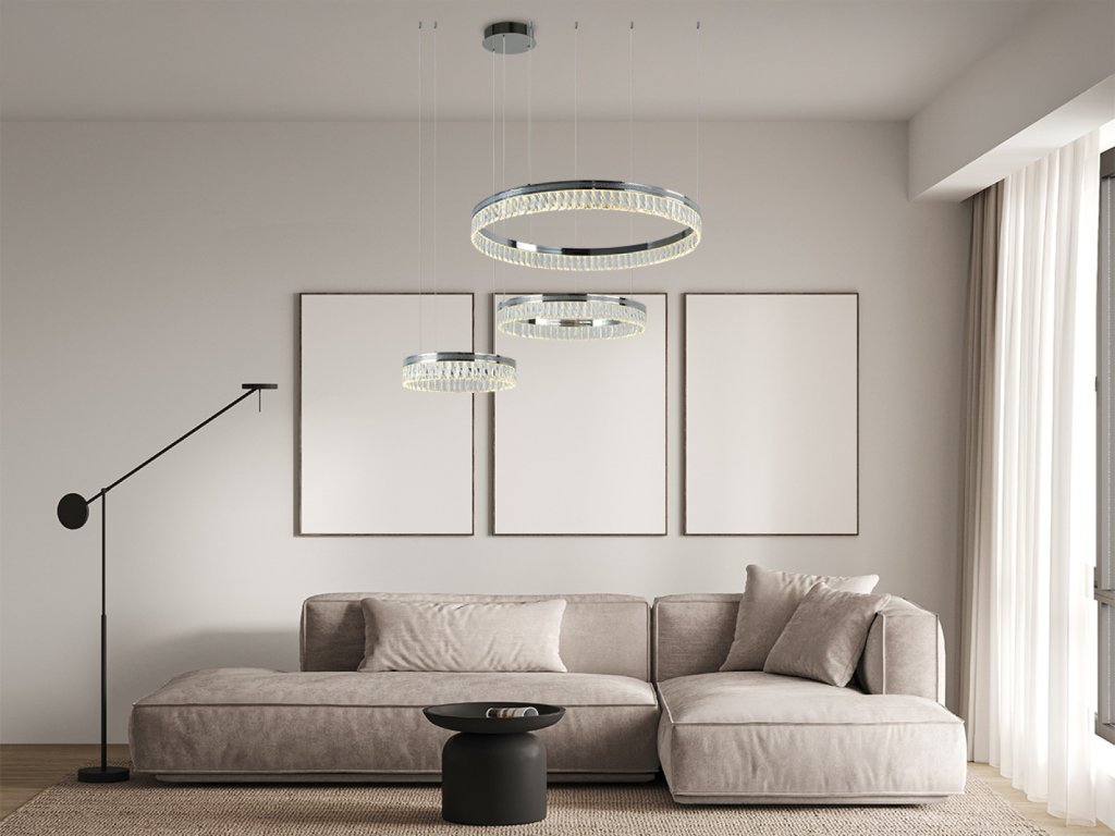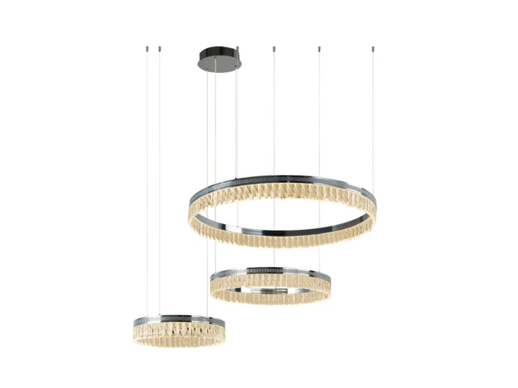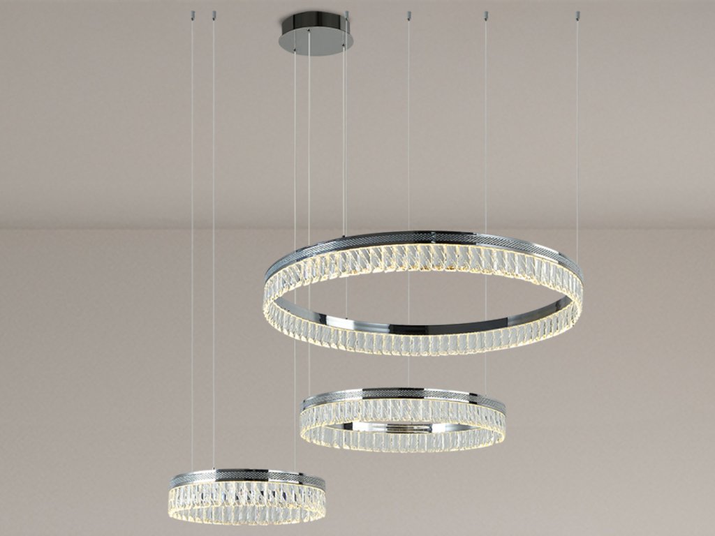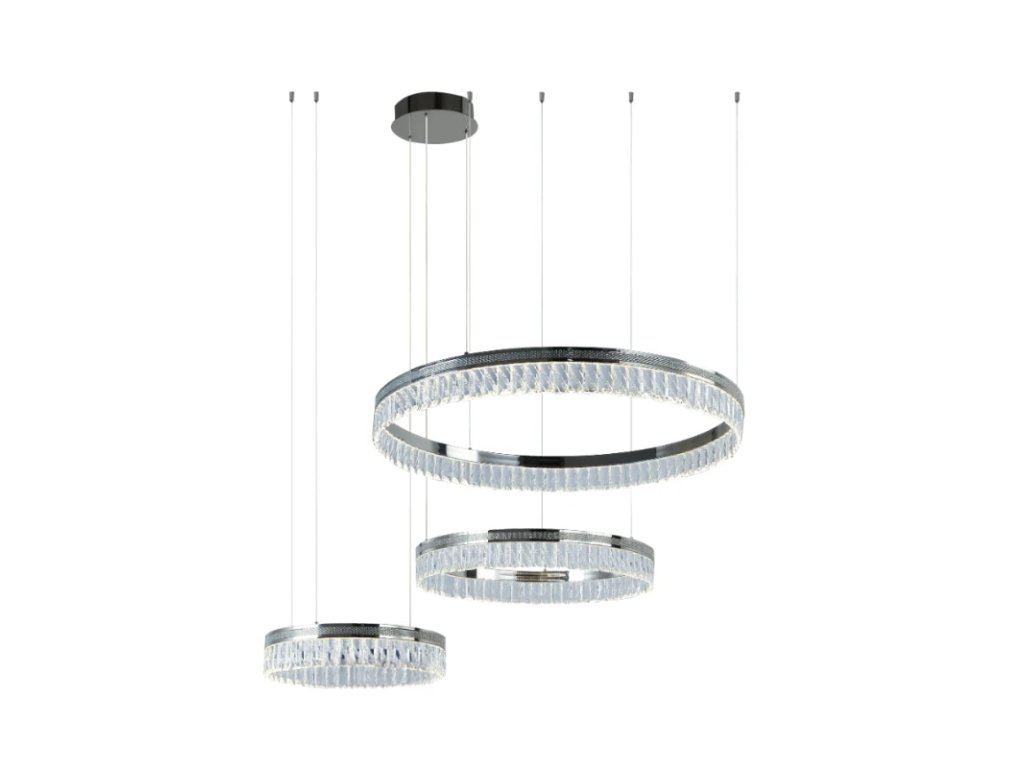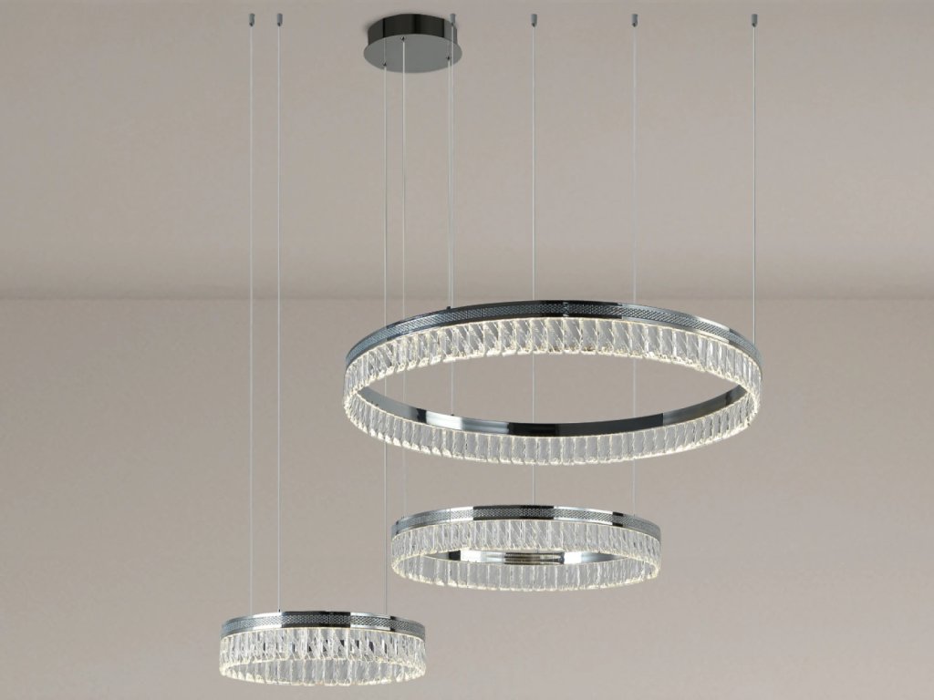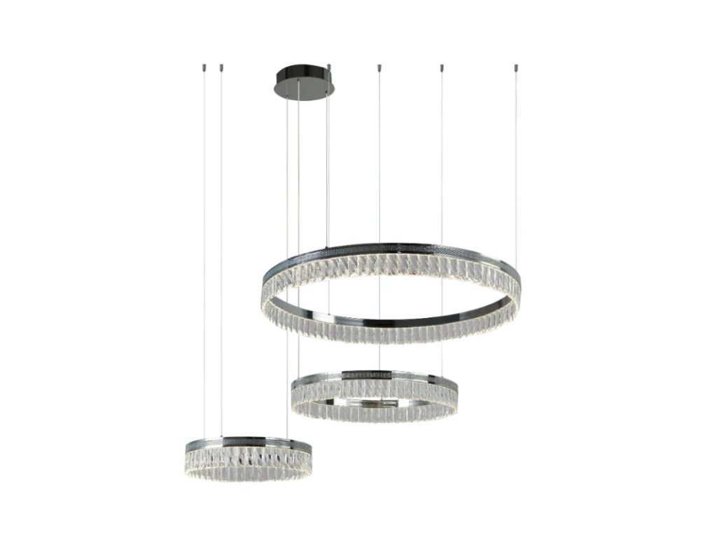 Prémiové materiály – kombinácia lesklej kovovej konštrukcie a brúsených krištáľov vytvára luxusný a sofistikovaný vzhľad.
