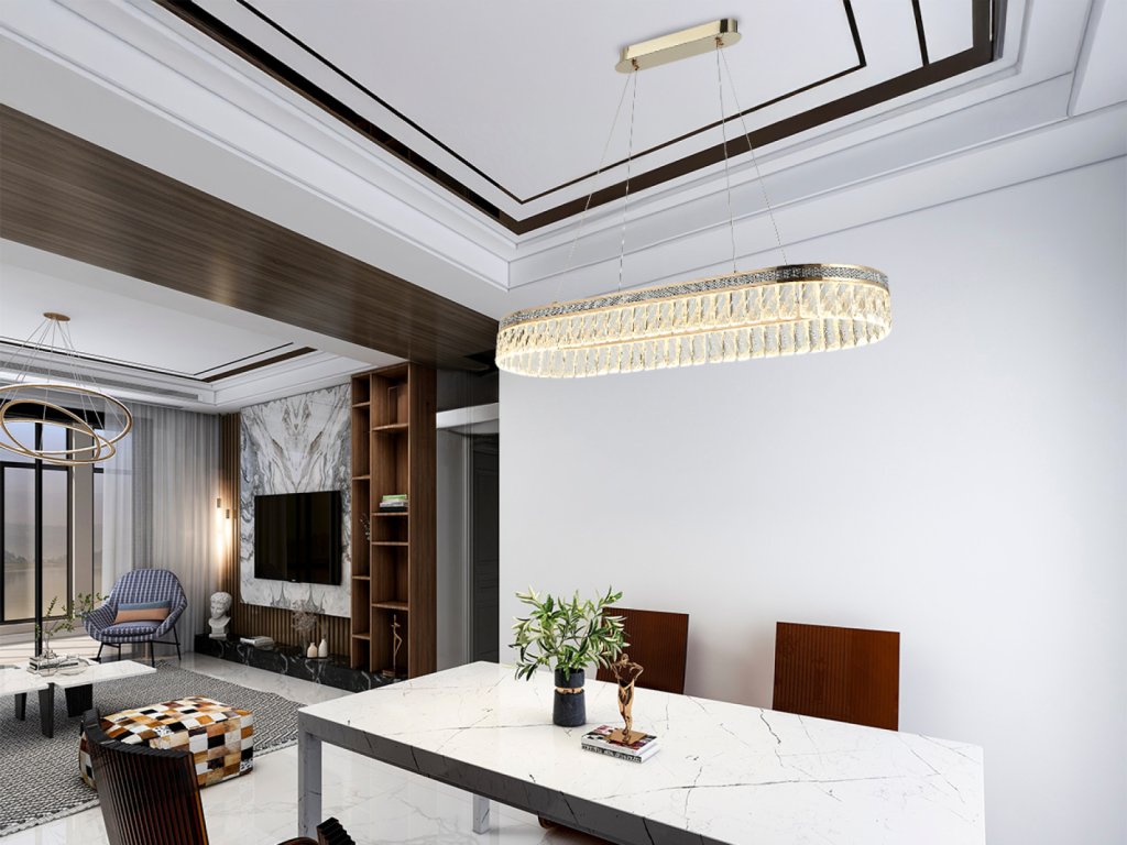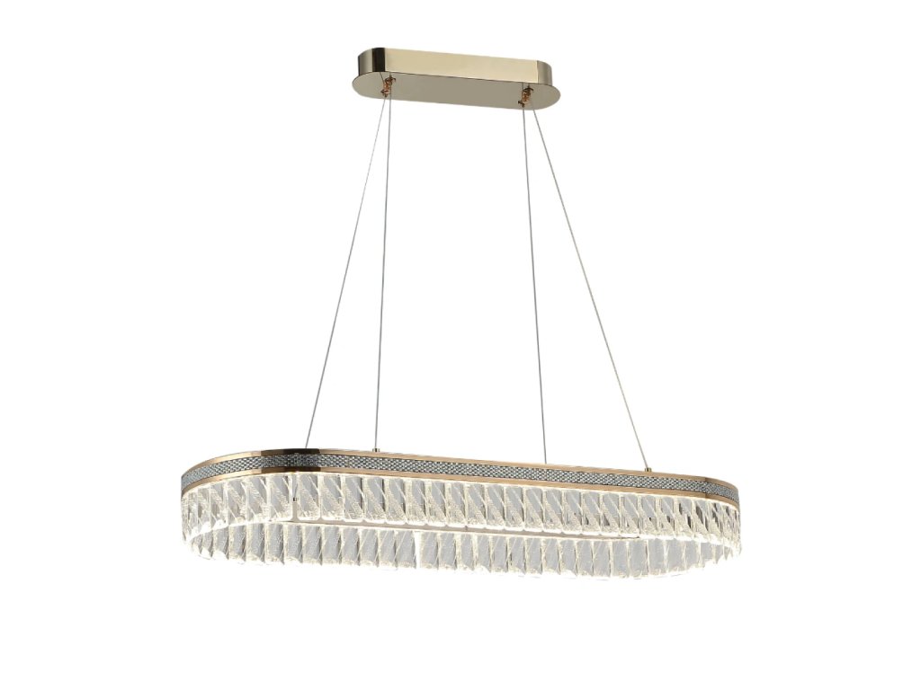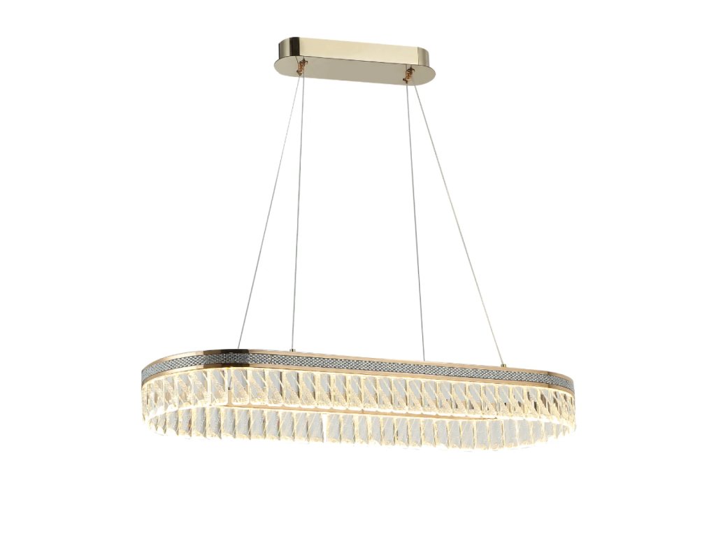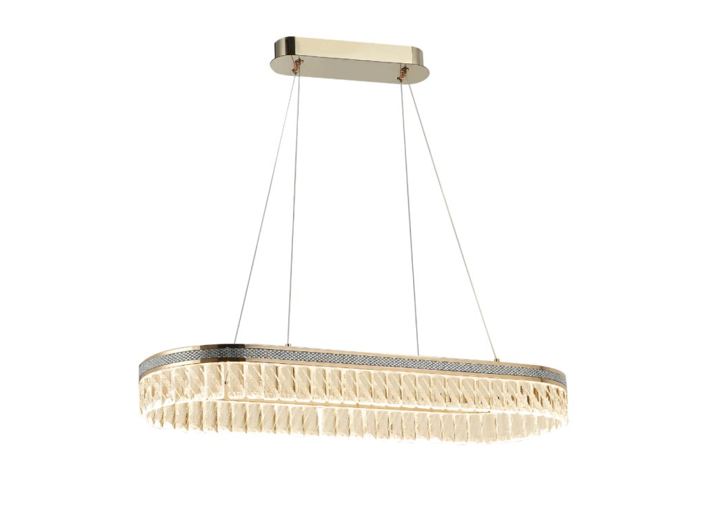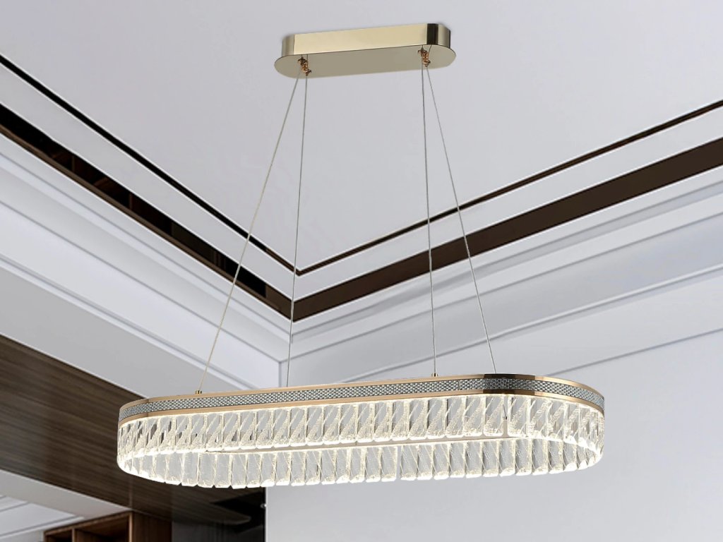 Prémiové materiály – kombinácia lesklej kovovej konštrukcie a brúsených krištáľov vytvára luxusný a sofistikovaný vzhľad.