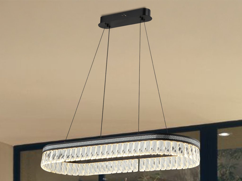 Dodajte svojmu interiéru štýl a eleganciu s dizajnovým závesným svietidlom THALIA N2108. Tento moderný luster s matnou čiernou povrchovou úpravou a dekoratívnymi krištáľovými prvkami sa stane centrálnym dizajnovým prvkom každej miestnosti – či už ide o obývačku, jedáleň alebo reprezentatívny priestor.