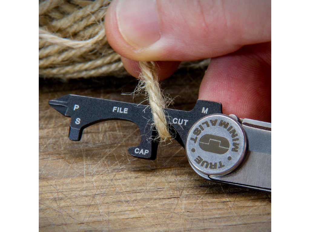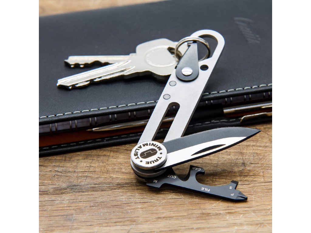 dizajnový nôž a multifunkčné náradie karabína, otvárač na fľaše, malý/veľký plochý skrutkovač, pilník, nástroj na strihanie vlasca, nôž z nehrdzavejúcej ocele, potiahnutý vrstvou čierneho titánu ľahký, tenký a zaberá málo miestaDodatočné parametre