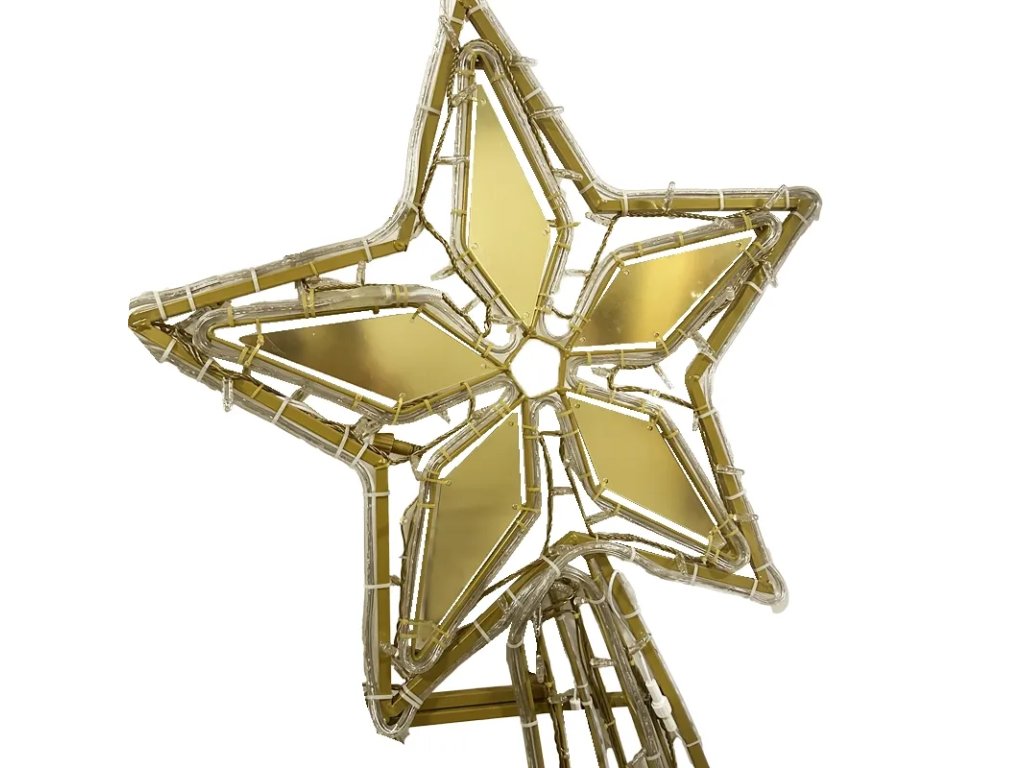 Elegantný dizajn a zlaté odtiene doplnené o zlaté hviezdy s efektom padajúcich komét, vytvárajú okúzlujúci vzhľad, zatiaľ čo LED svetielka pridávajú jemný lesk.