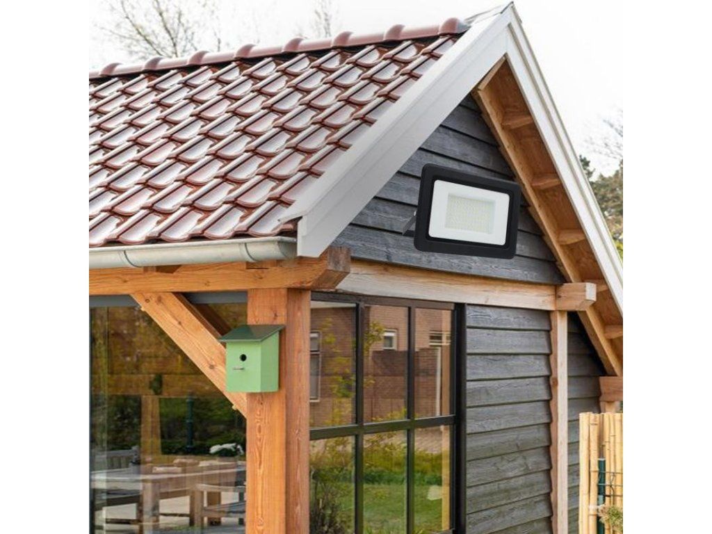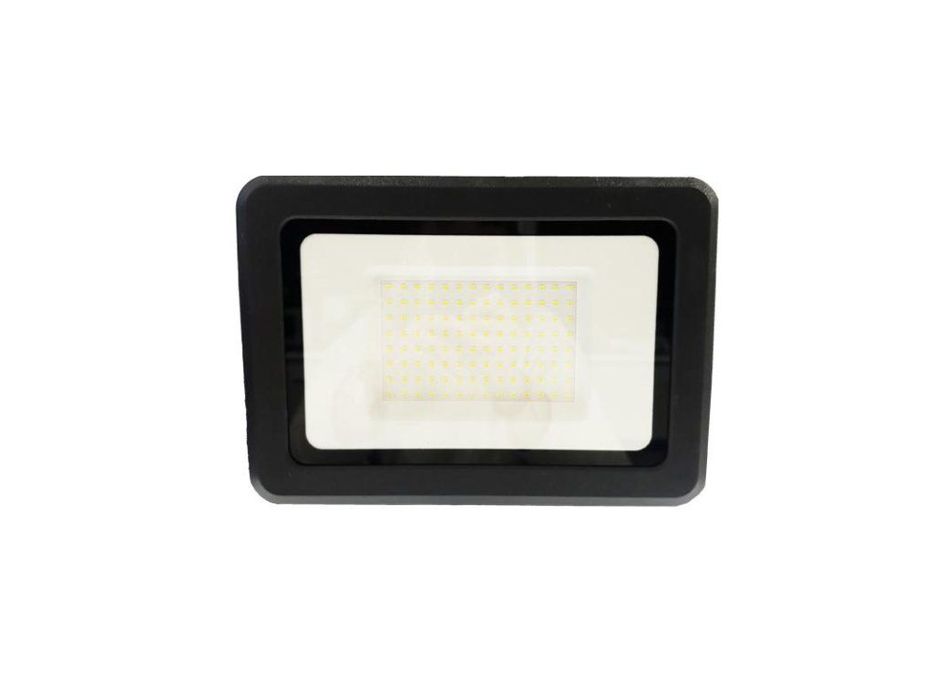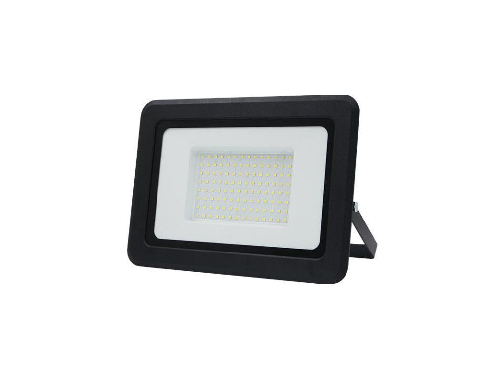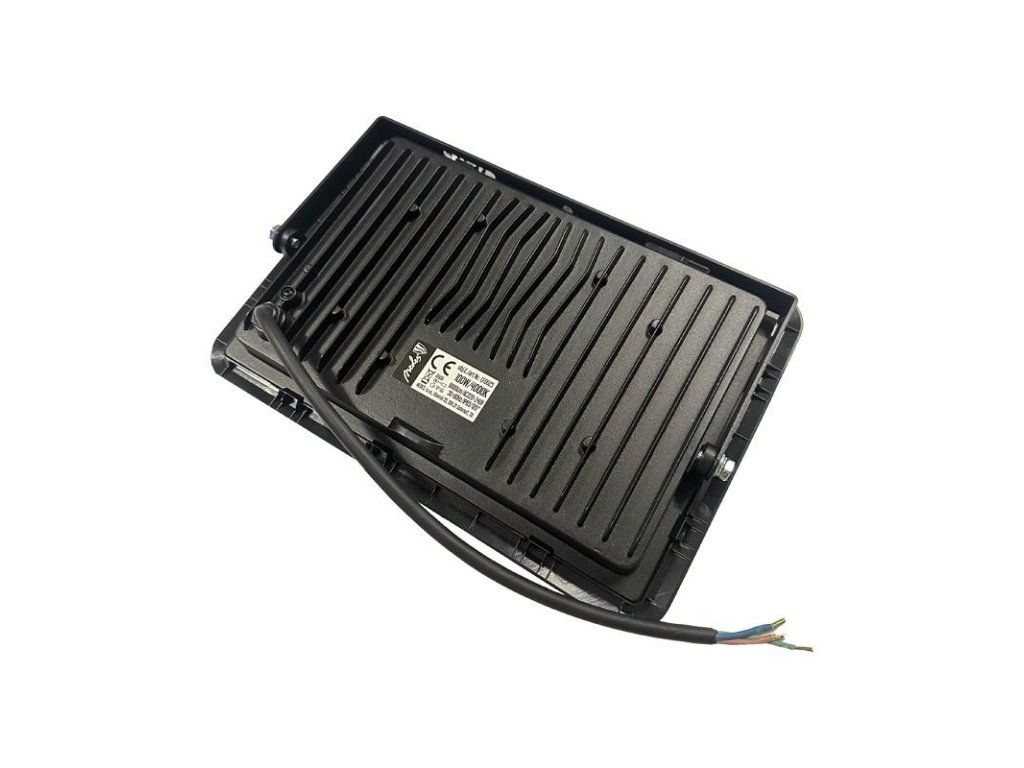 LED reflektor LF0025 v čiernej farbe, s výkonom 100W, svietivosťou 8000Lm a farbou svetla 4000K disponuje držiakom a vysokokvalitným LED čipom.