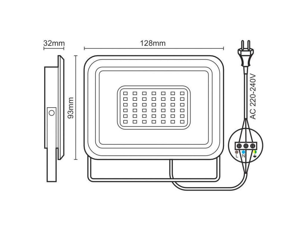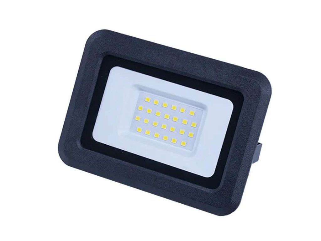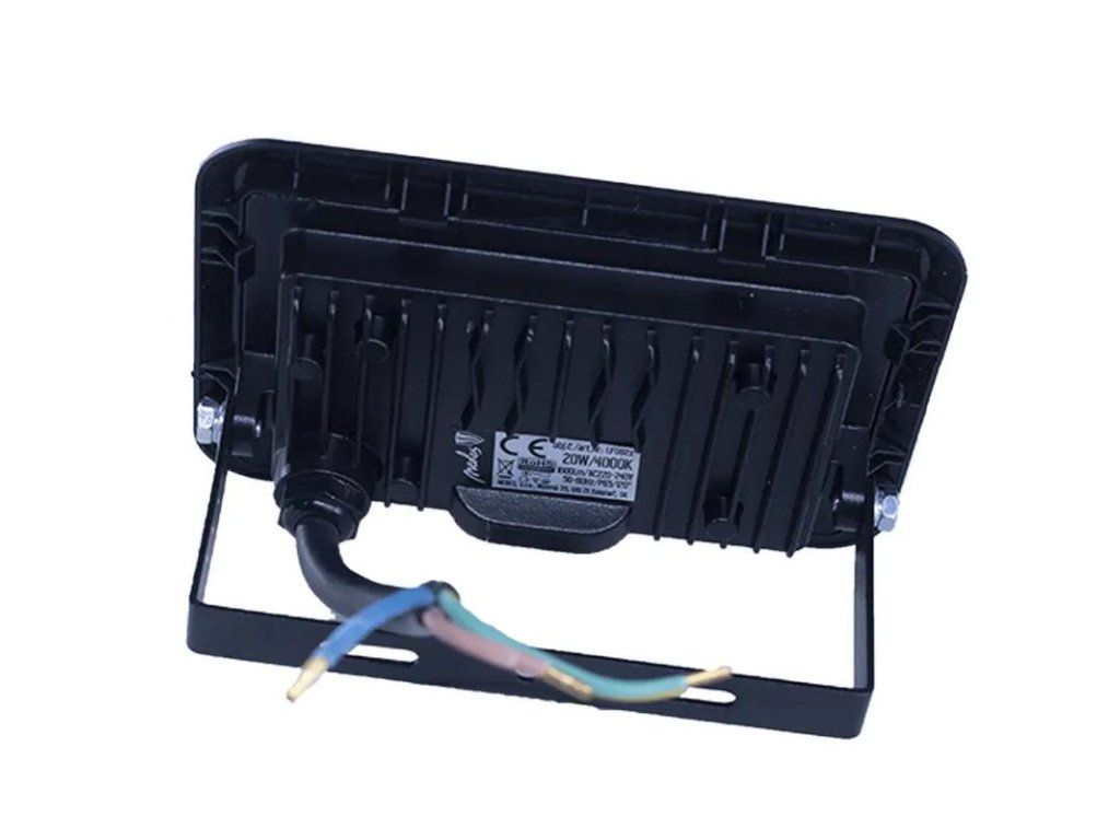 LED reflektor LF0022 v čiernej farbe, s výkonom 20W, svietivosťou 1600Lm a farbou svetla 4000K disponuje držiakom a vysokokvalitným LED čipom.
