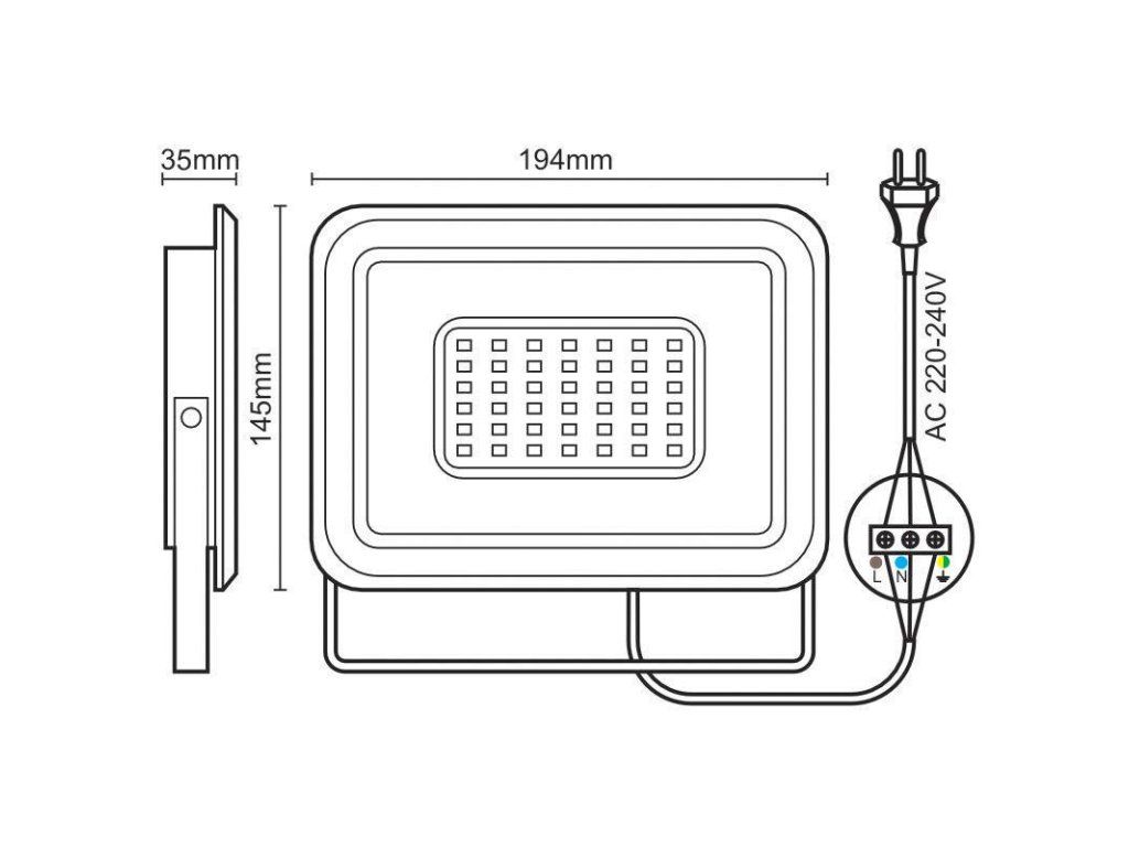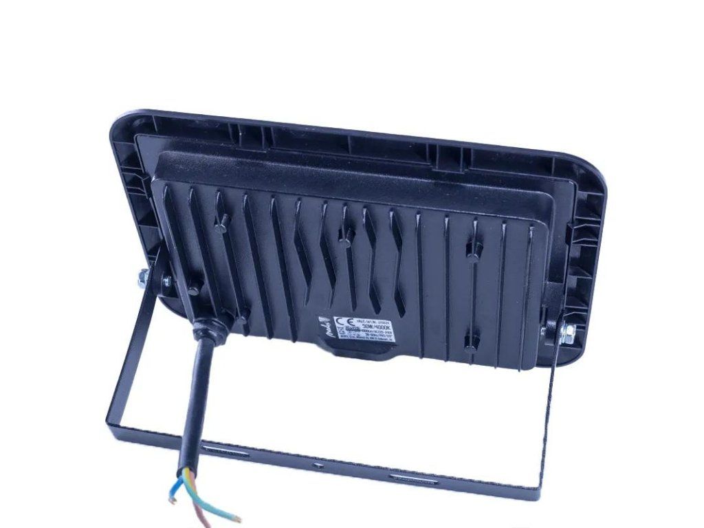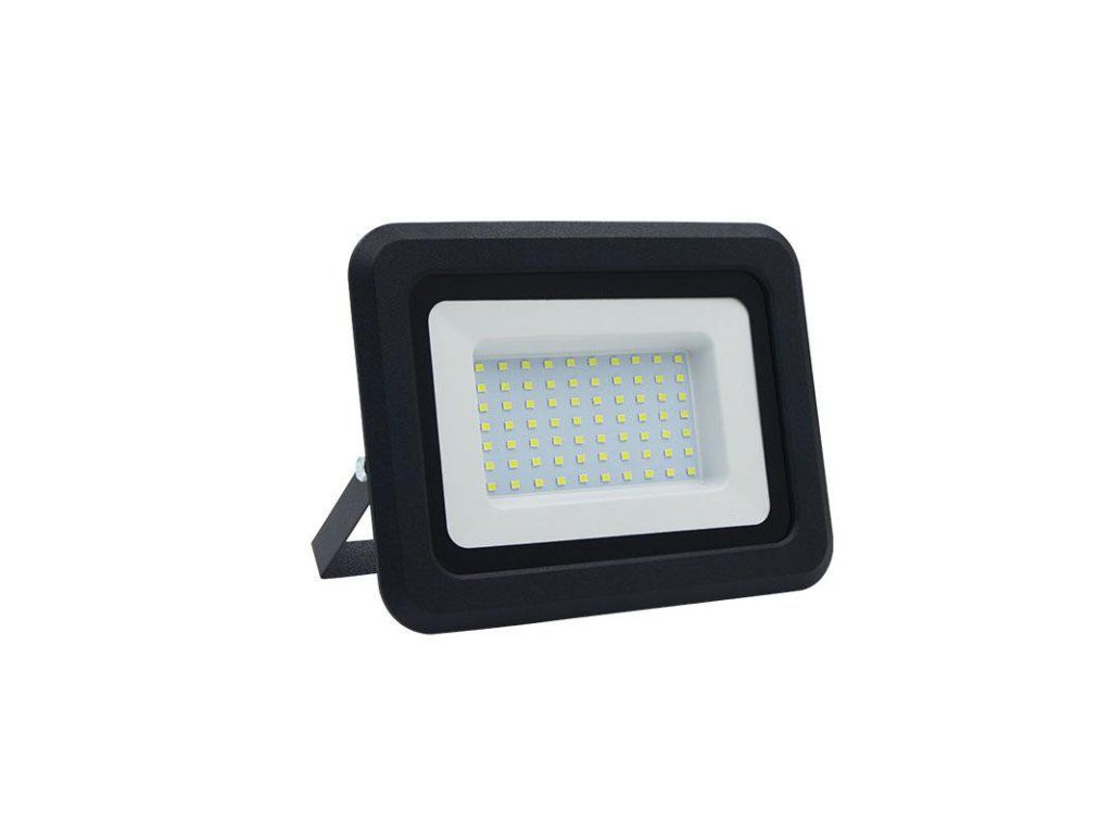 LED reflektor LF0024 v čiernej farbe, s výkonom 50W, svietivosťou 4000Lm a farbou svetla 4000K disponuje držiakom a vysokokvalitným LED čipom.