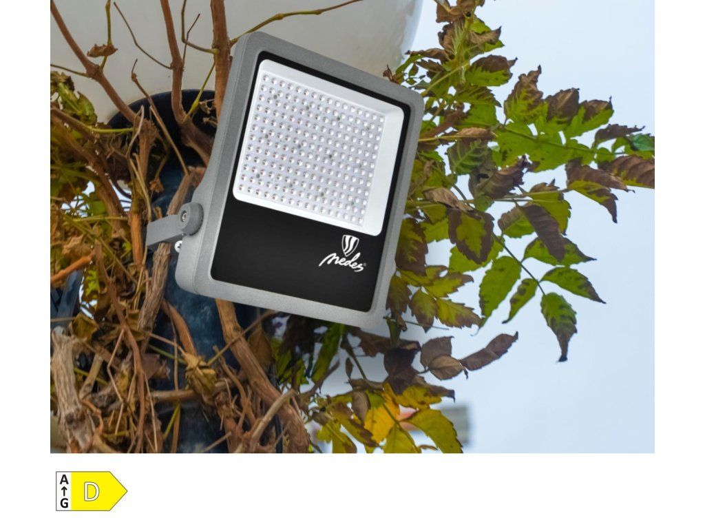 LED reflektor LF4026S v šedej farbe, s výkonom 150W, svietivosťou 22500Lm a farbou svetla 5000K disponuje držiakom a vysokokvalitným LED čipom.