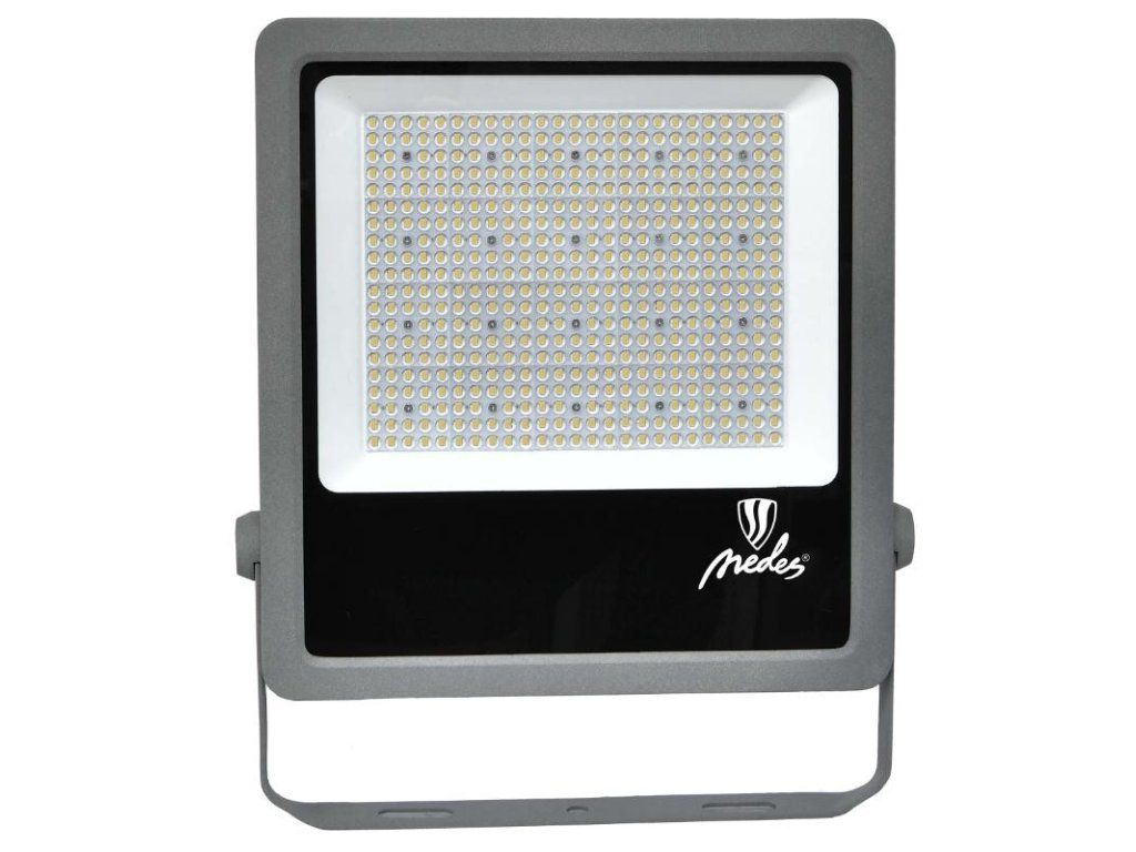LED reflektor LF4028S v šedej farbe, s výkonom 300W, svietivosťou 45000Lm a farbou svetla 5000K disponuje držiakom a vysokokvalitným LED čipom.
