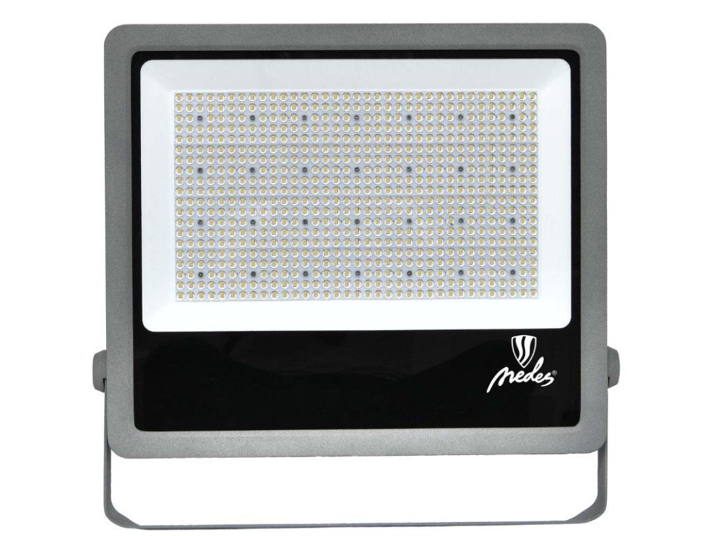 LED reflektor LF4029S v šedej farbe, s výkonom 400W, svietivosťou 60000Lm a farbou svetla 5000K disponuje držiakom a vysokokvalitným LED čipom.