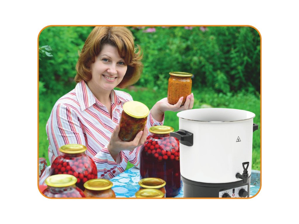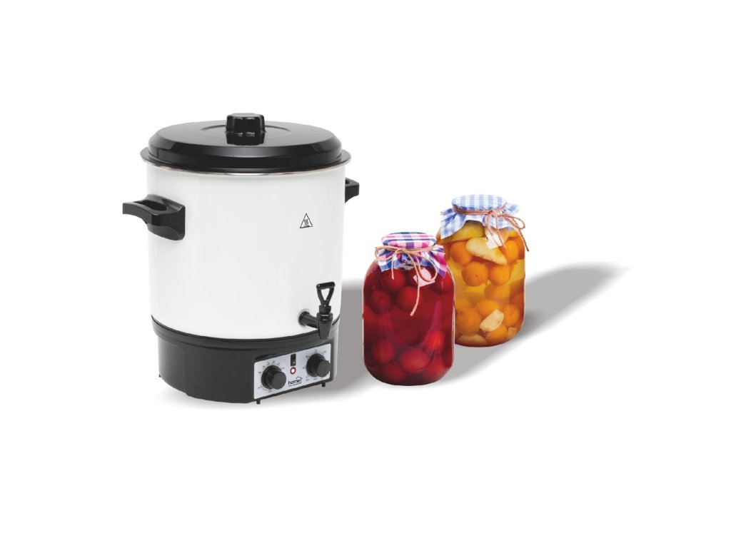 | funkcia: | vhodný na sterilizáciu max. 14 ks 1 litrových zaváracích pohárov alebo na ohrievanie, varenie, udržanie teploty max. 27 l tekutiny (napr. čaj, varené víno) |