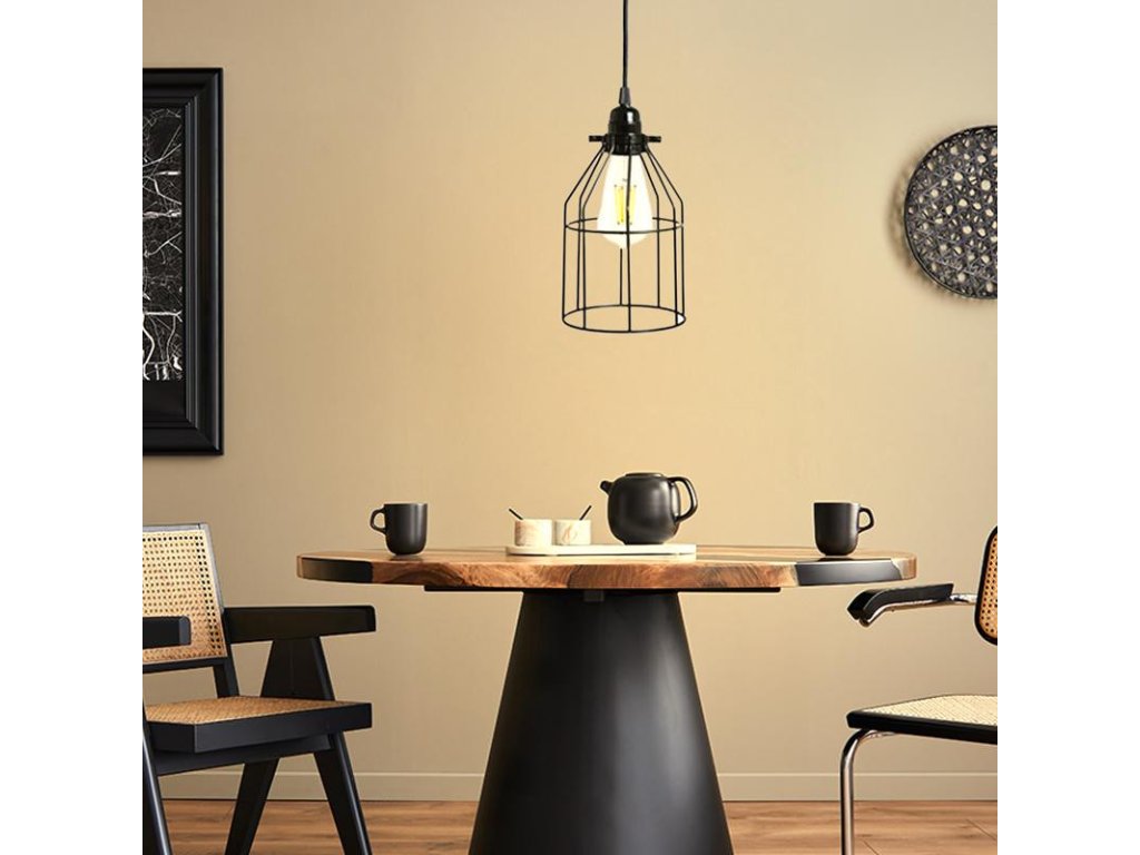 Závesné čierne kovové svietidlo 1 x E27 - ME0011