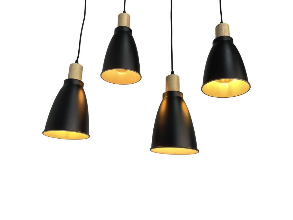 Závesné čierne kovové svietidlo 4 x E27 - ME0013-3