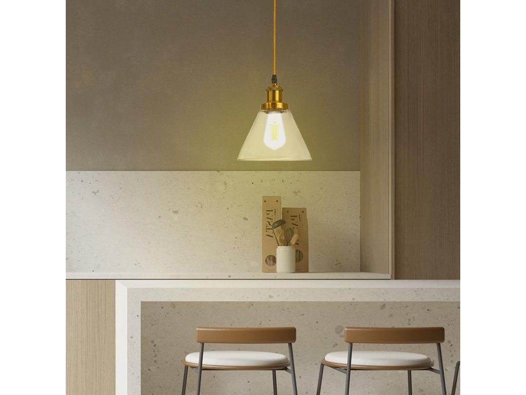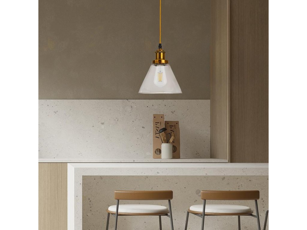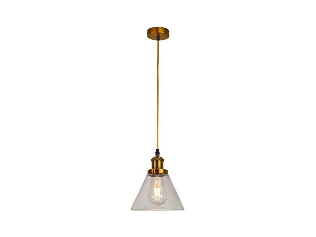 | materiál | sklo - číra ( podstava / objímka - kov, antická zlatá, kábel - textilný ) |