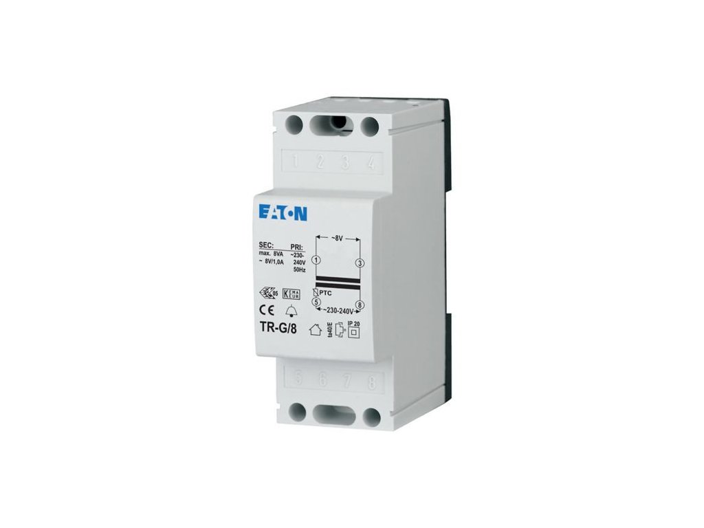 Zvonkový trasformátor EATON TR-G/8. Transformátor 230V, 8 V, 1A, 2HP.Dodatočné parametre